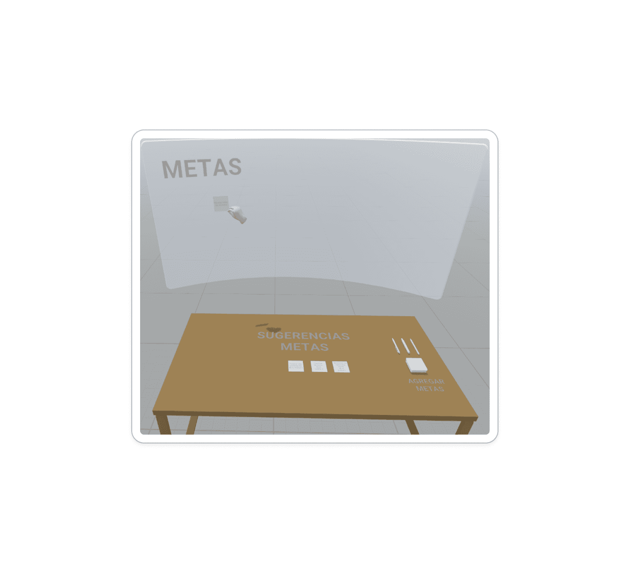 Based on these findings, we redesigned the onboarding process in a second iteration. The updated onboarding included clearer instructions and visual cues to guide users through the spatial transitions. We also adjusted the board's positioning to improve ergonomic comfort, ensuring that interactions felt more natural and intuitive. This redesign aimed to enhance the overall user experience and address the pain points identified during testing.